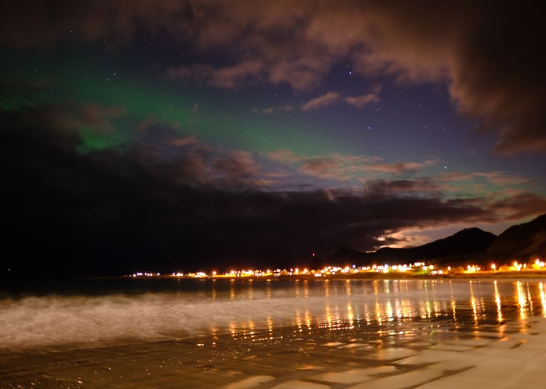 Als het op de Lofoten vanaf eind augustus weer echt donker wordt, gebeurt er nog iets sprookjesachtigs. Boven je hoofd verschijnen groene en paarse sluiers die dansen aan de hemel: het noorderlicht. Volgens oude Noorse verhalen zijn het de geesten van opa’s en oma’s, die een lange, vrolijke reis langs de sterren maken. Op zich niks mis mee, maar in het Polar Light Center op het eiland Austvågøya legt kenner Rob Stamnes geestdriftig uit dat die opa's en oma's eigenlijk geladen deeltjes van de zon zijn, die botsen met onze atmosfeer. Welke variant je ook gelooft: het verschijnsel blijft voelen als pure magie.